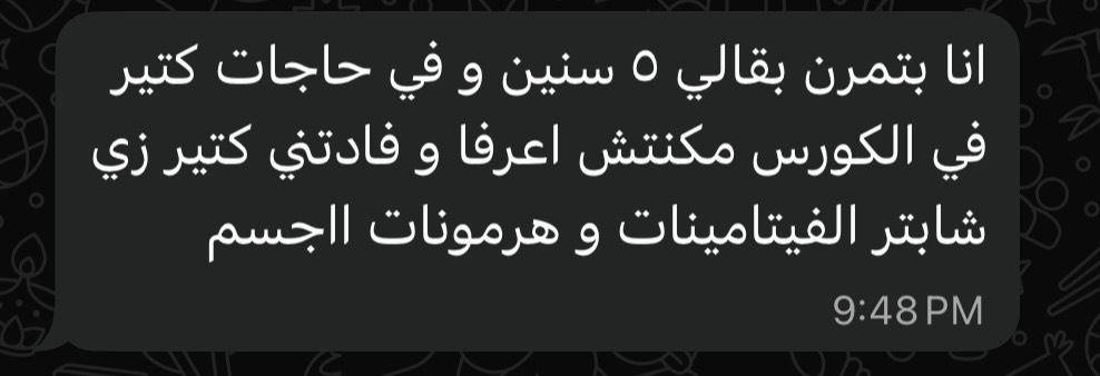 ضمان باقة ! في حالة انك اشتركت في باقة ال ٣ شهور والتزمت بالبرامج طول فترة الاشتراك واتبعت التعليمات ولم تجد نتيجة او فرق بيتم ارجاع المبلغ كامل